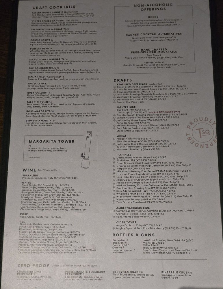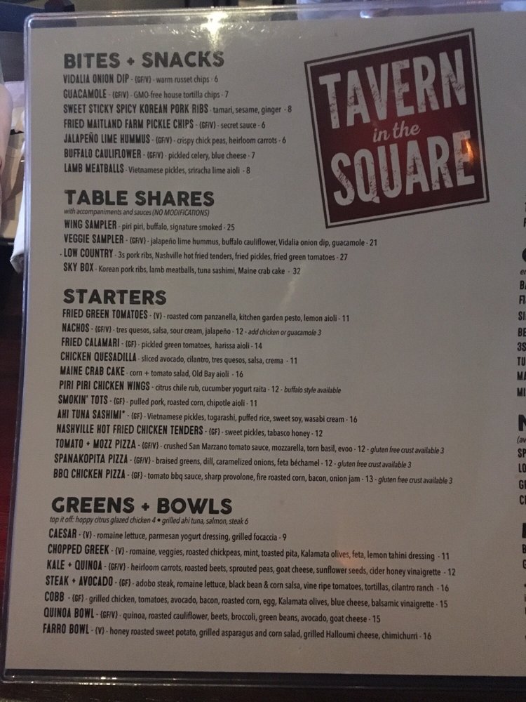 Tavern in the Square Menu